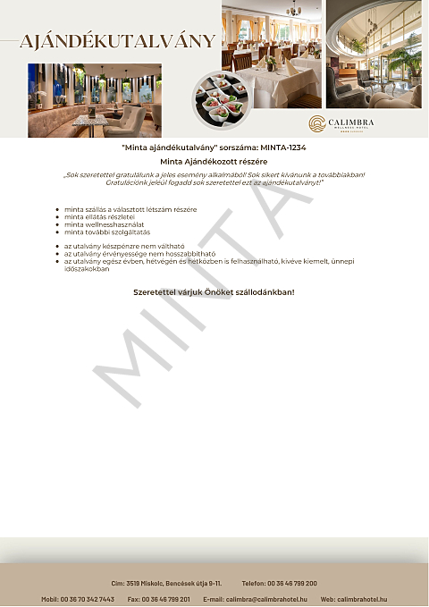 - kedvezmény kupont, -személyenként egy db 2.000.-Ft értékben- ami bármelyik masszázs értékébe beszámítható. /A masszázs 14 éves kor felett vehető igénybe./ A kupon össze nem vonható. /